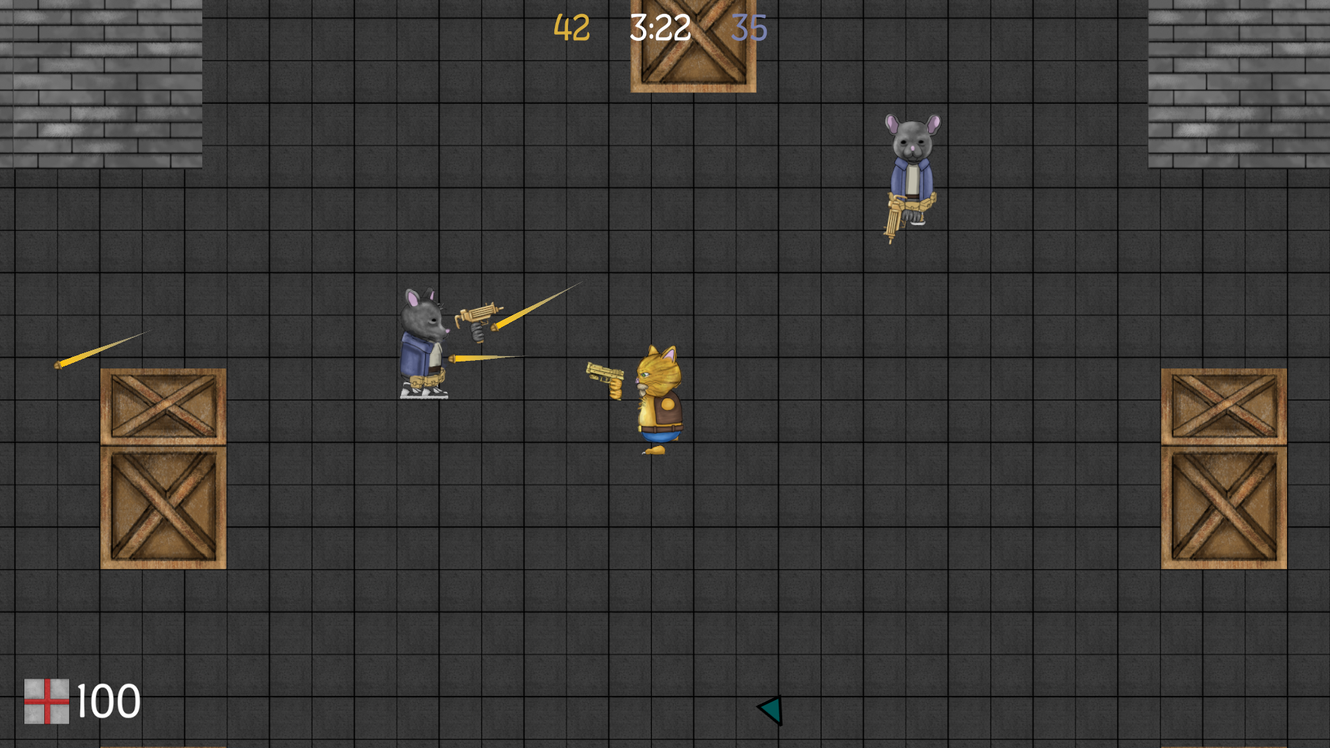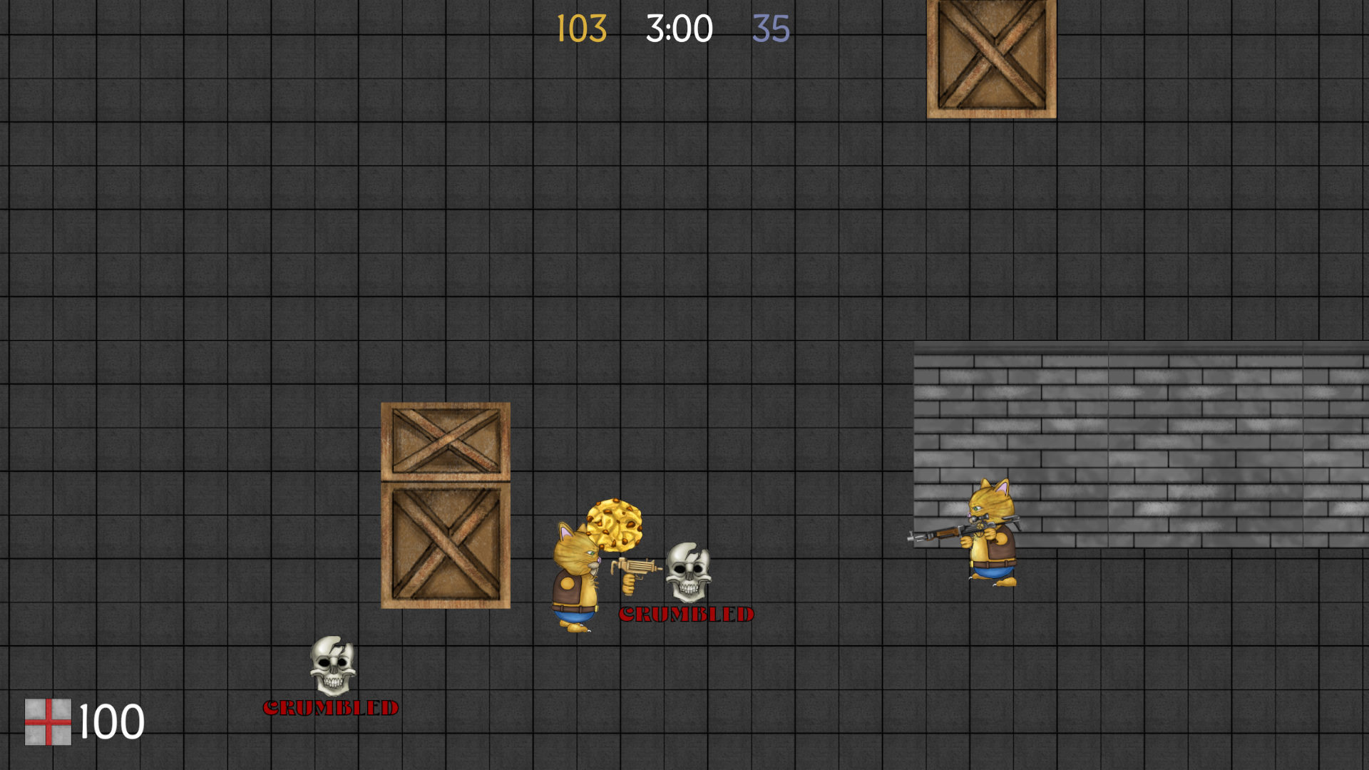 Crumb Busters is a chaotic top-down shooter where you rush for the biscuit, dodge the bullets, and risk it all to outscore your rivals.